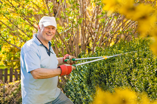 Old Man Trimming The Hedge In His Garden Gardening 23